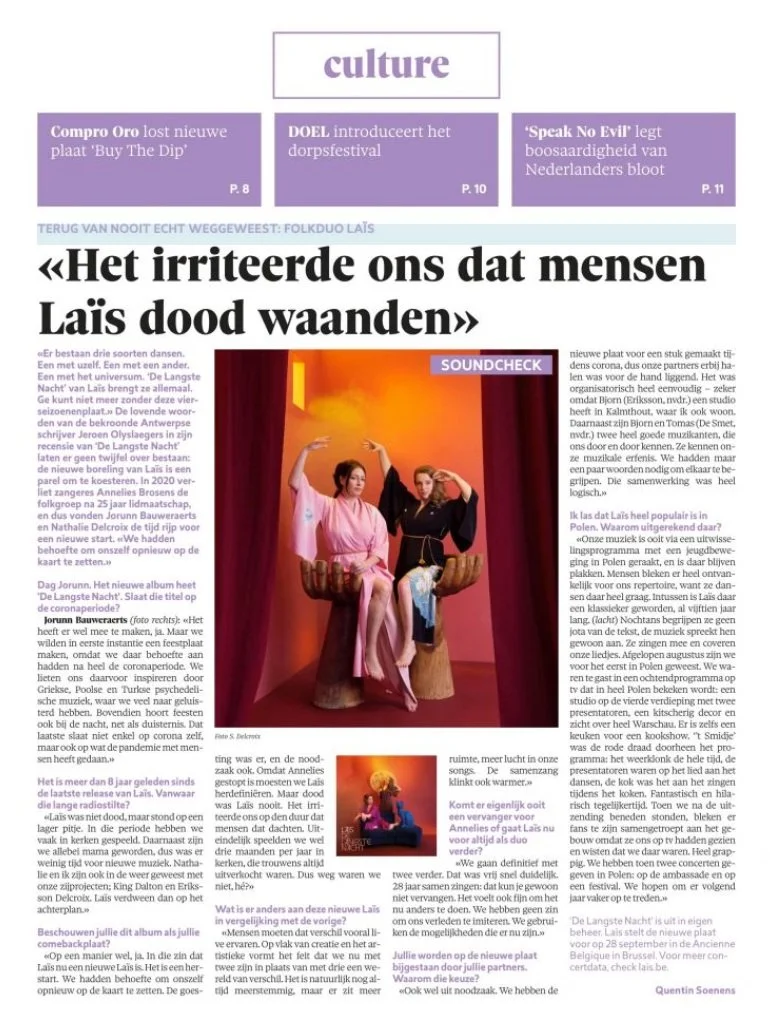 “Laïs bewees in Brussel méér dan overtuigend dat haar nieuwe start tal van mogelijkheden in zich draagt. Over de toekomst van het gezelschap hoeft u zich dus voorlopig geen zorgen te maken. ” — Focus Knack